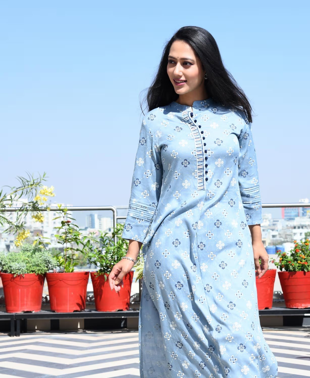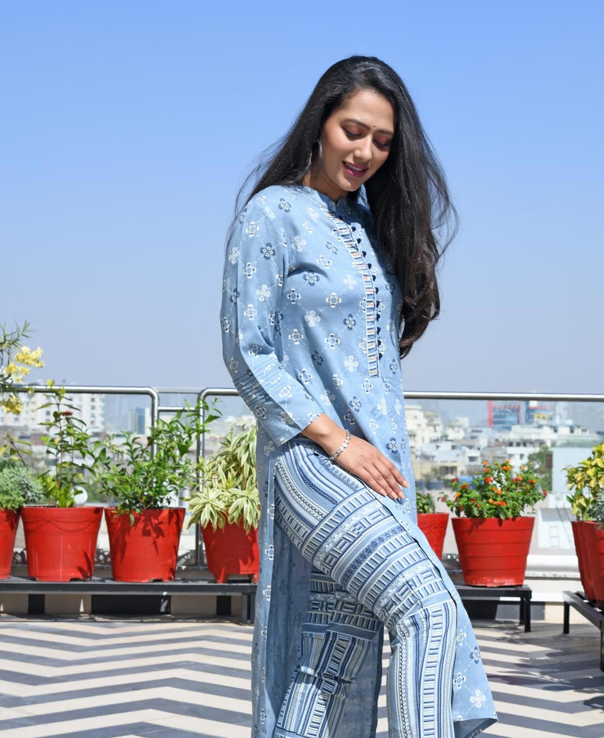 Grey Printed Handwork Kurta With Pant (Set of 2) (S)